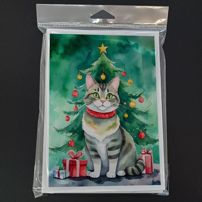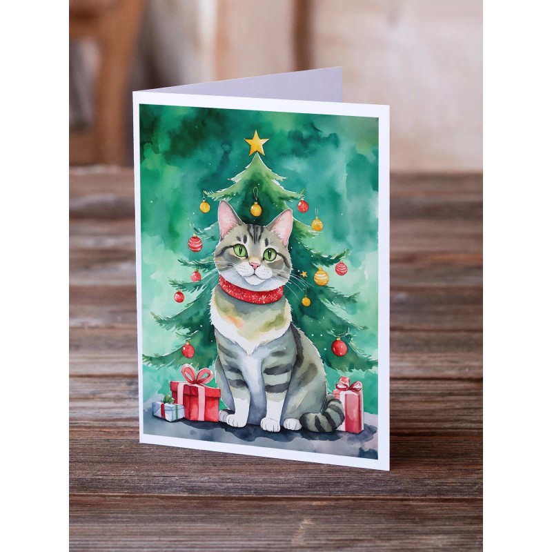 Raas Cat By Christmas Tree Greeting Cards Envelopes Pack of 8 DAC7247GCA7P
