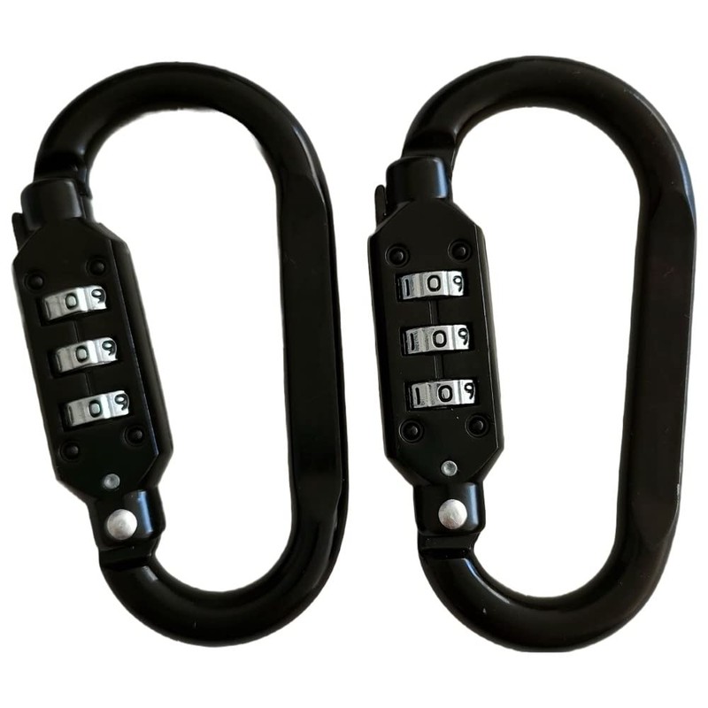 - 3-digit carabiner key Material: Aluminum alloy; Size: 3.0 x 1.6 inches (7.5 x 4 cm); Weight: 1.8 oz (5