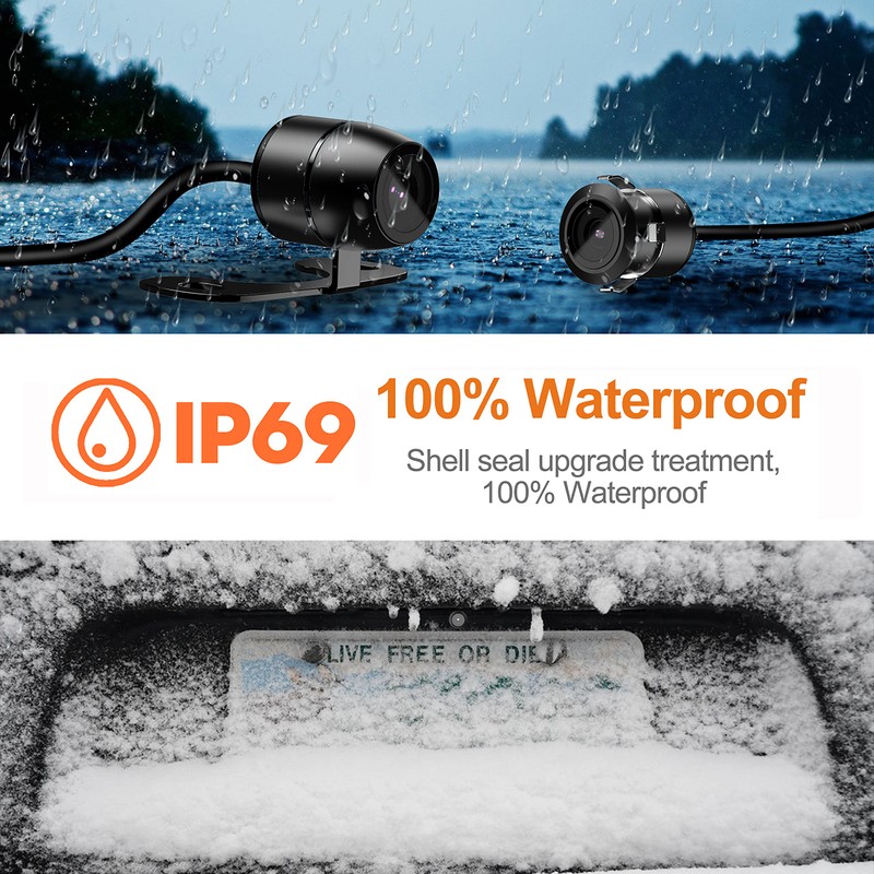 - 【Metal Housing,Remarkable Waterproof IP69】RAAYOO back up camera for car adopts a sturdy metal housing, support IP69 waterproof IP rate. It designed with fully sealed glue filling craft, so the waterproof effect is better than IP67 and IP68, you absolutely no need to worry about water, fog or mist inside