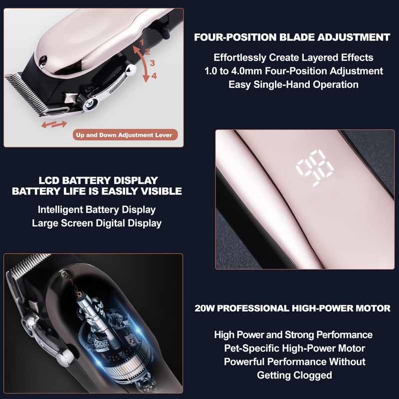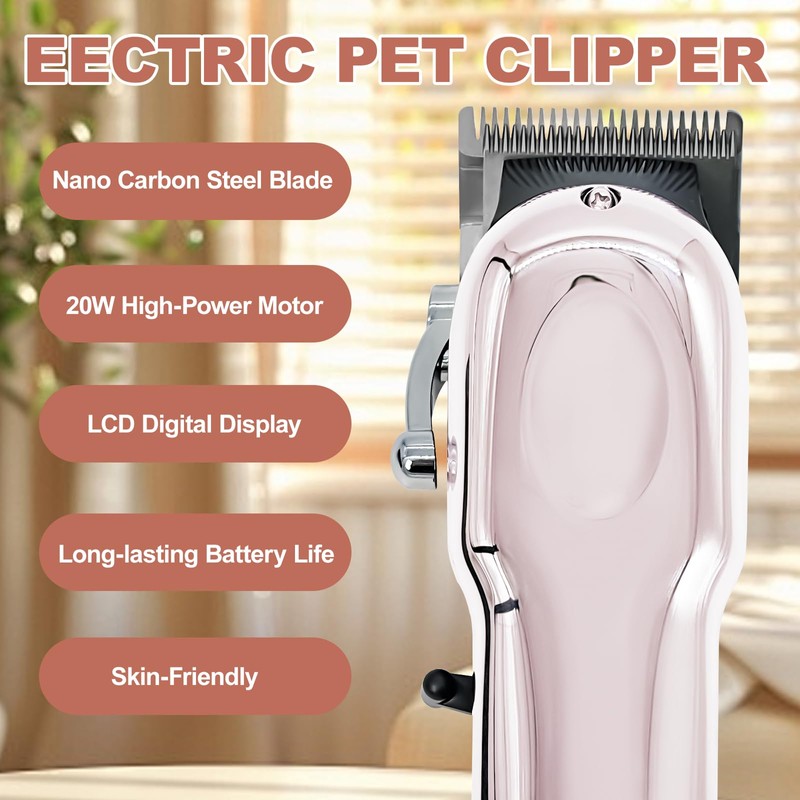 - Powerful Performance and Safe Design: This pet clippers grooming kit features a 20-watt high-power motor, delivering ample power to effortlessly handle even thick or matted fur without snagging. The meticulously designed high-quality nano carbon steel blades are both sharp and safe, ensuring consistently excellent cutting performance during grooming sessions, keeping your pet in top condition.