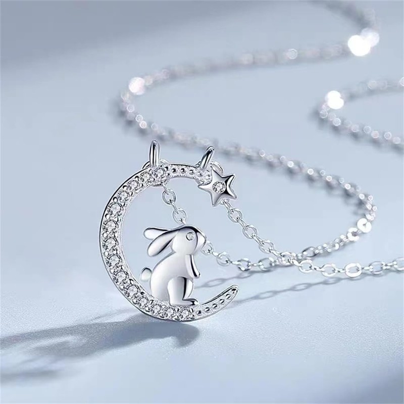 - Elegant Design: Charming crescent moon pendant adorned with a playful bunny motif and star details for a whimsical yet sophisticated look