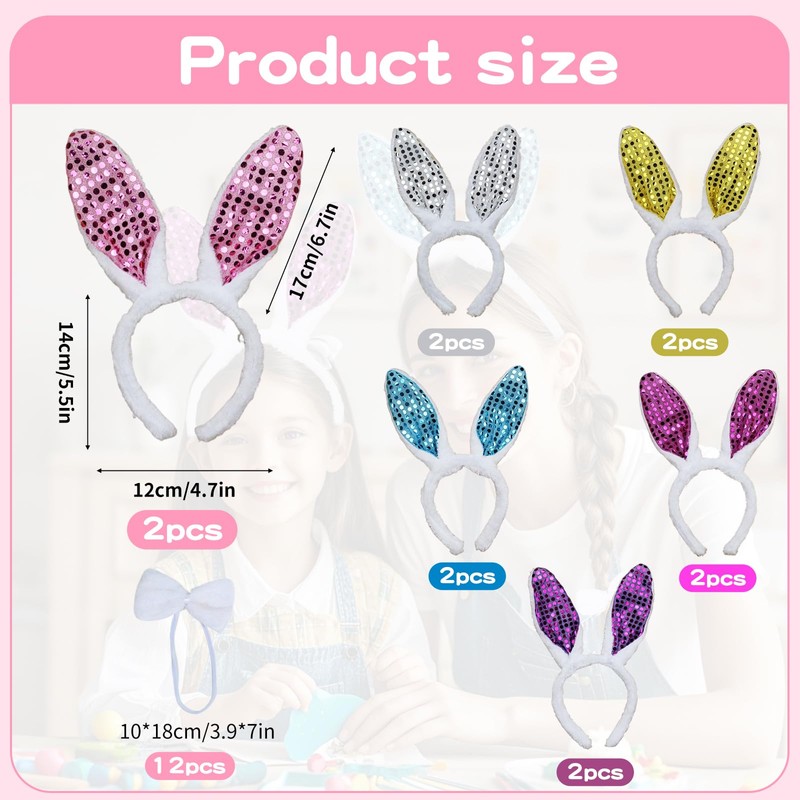 • Our package contains 12 rabbit ear headbands and 12 bow hair accessories. This rich set meets all your party needs!