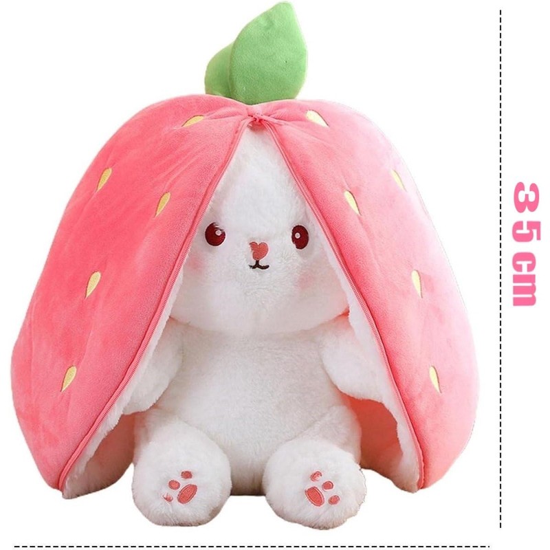 Rabbit Hide Plush Bunny Cuddly Toy Rabbit Small Filled Rabbit with Carrots and Strawberries Plush Toy Rabbit Doll Rabbit Plush Soft Plush Rabbit Toy Cute Cuddly Toys (30 cm)