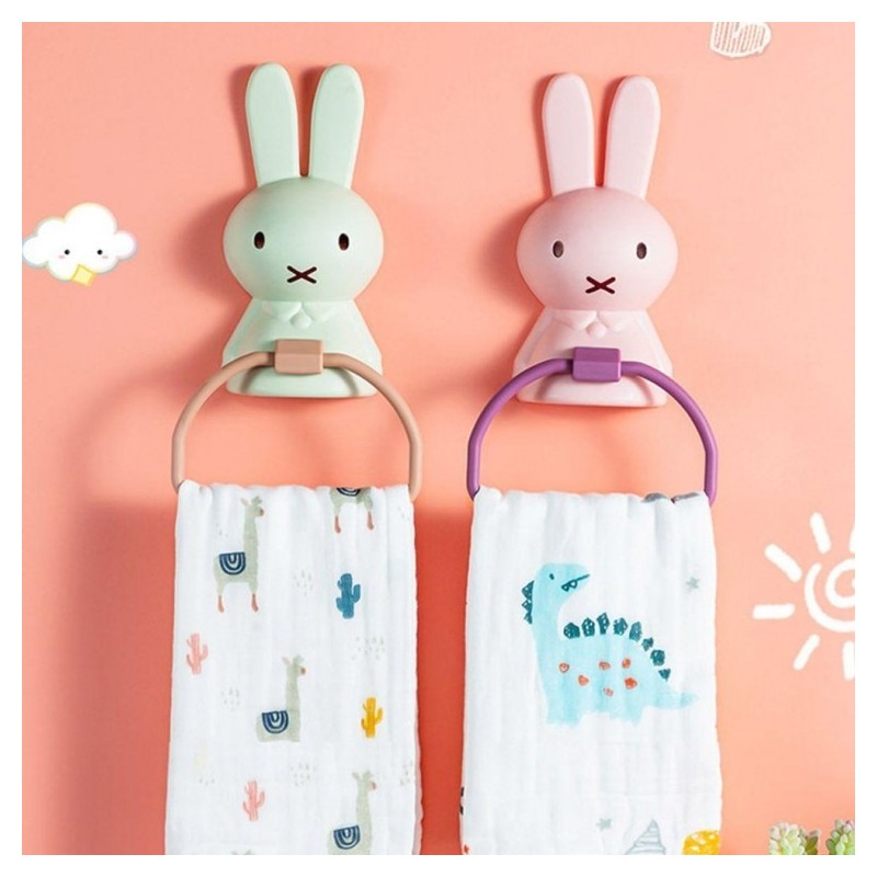 Rabbit towel rack bathroom non-perforated infant Towel rack pink