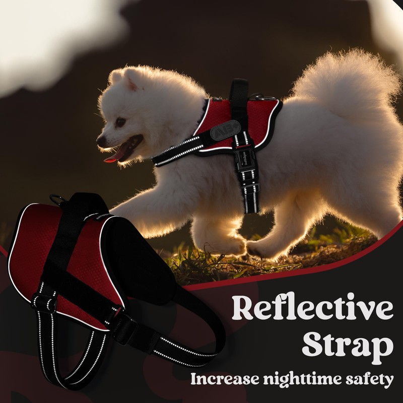 - Safety and Control Made Easy: Walk with confidence! A strong D-ring and durable nylon handle offer full control, while reflective strips keep your dog visible in low light. Whether on busy streets or dimly lit paths, this harness prioritizes safety with every step.