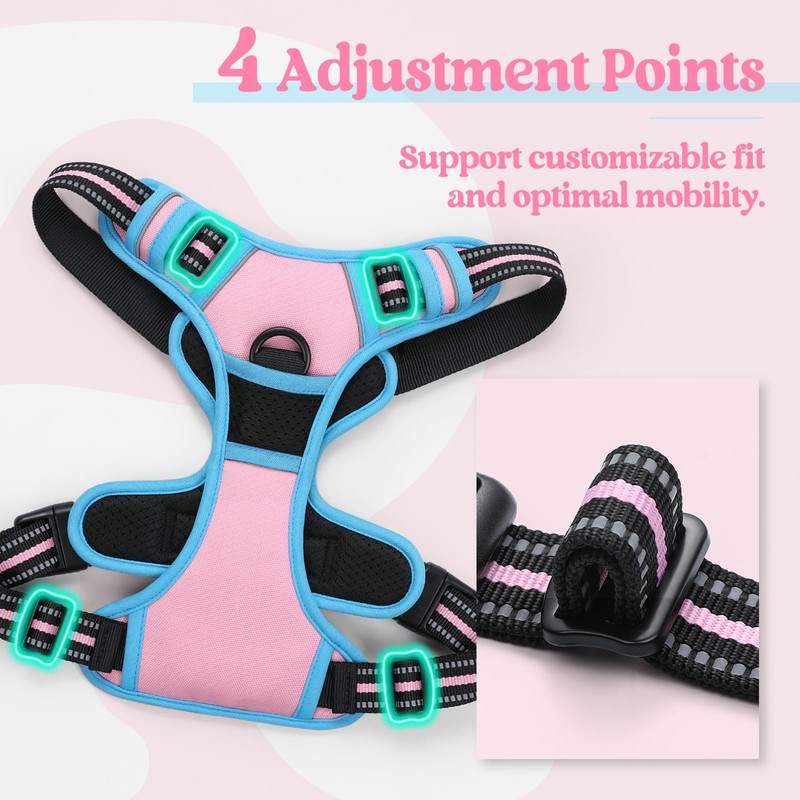 rabbitgoo Dog Harness No Pull with 2 Leash Clips, Adjustable Soft Padded, Reflective Oxford No Choke Pet Vest with Easy Control Handle for Medium Sized Dogs, Pink & Blue, M