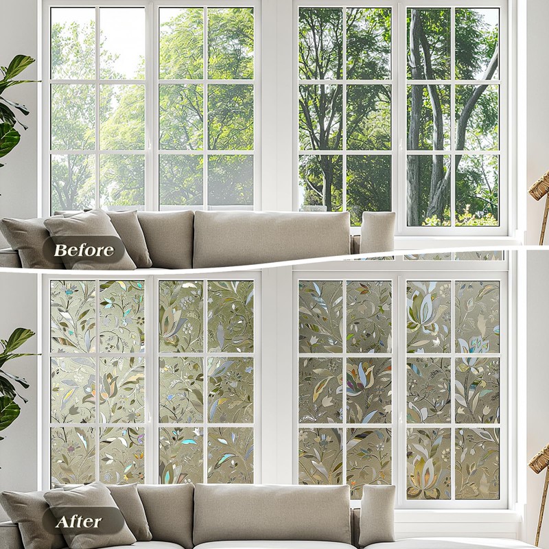 - Enjoy Natural Light and Privacy: This privacy window film is the perfect alternative to heavy curtains or blinds during the summer months. It provides privacy by obscuring shapes and preventing curious onlookers from peeping inside. The decorative window film also softens harsh sunlight while still allowing natural light to filter in
