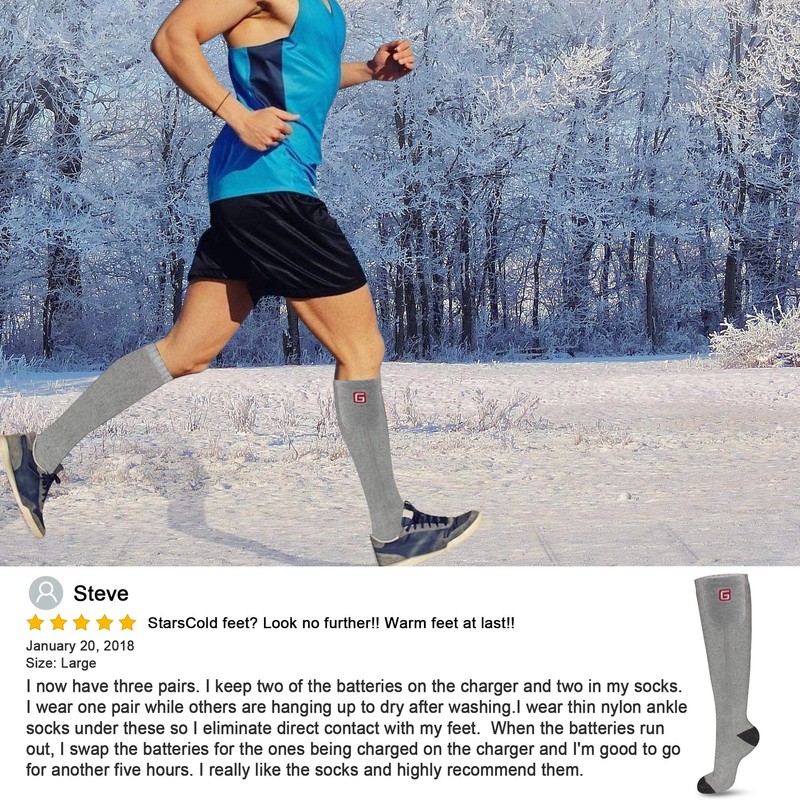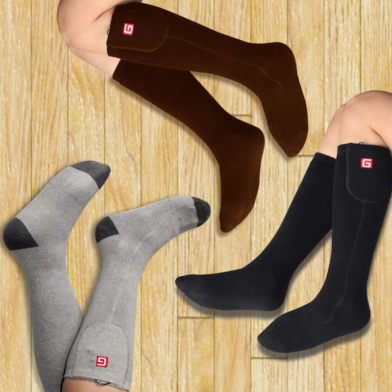 - Instant Heat: Rechargeable electric t heated socks are powered by a pair of 3.7V rechargeable Li-ion batteries (INCLUDE), heating temperature up to 125°F, heating element is on the top of the foot near the toes. Three adjustable heat settings for different temperature demands.