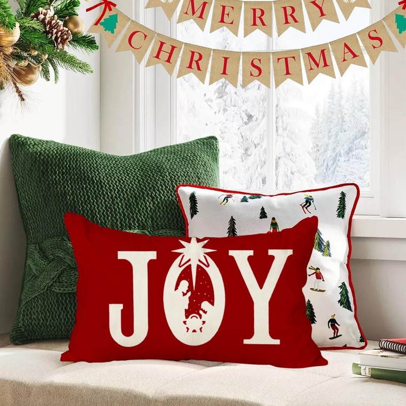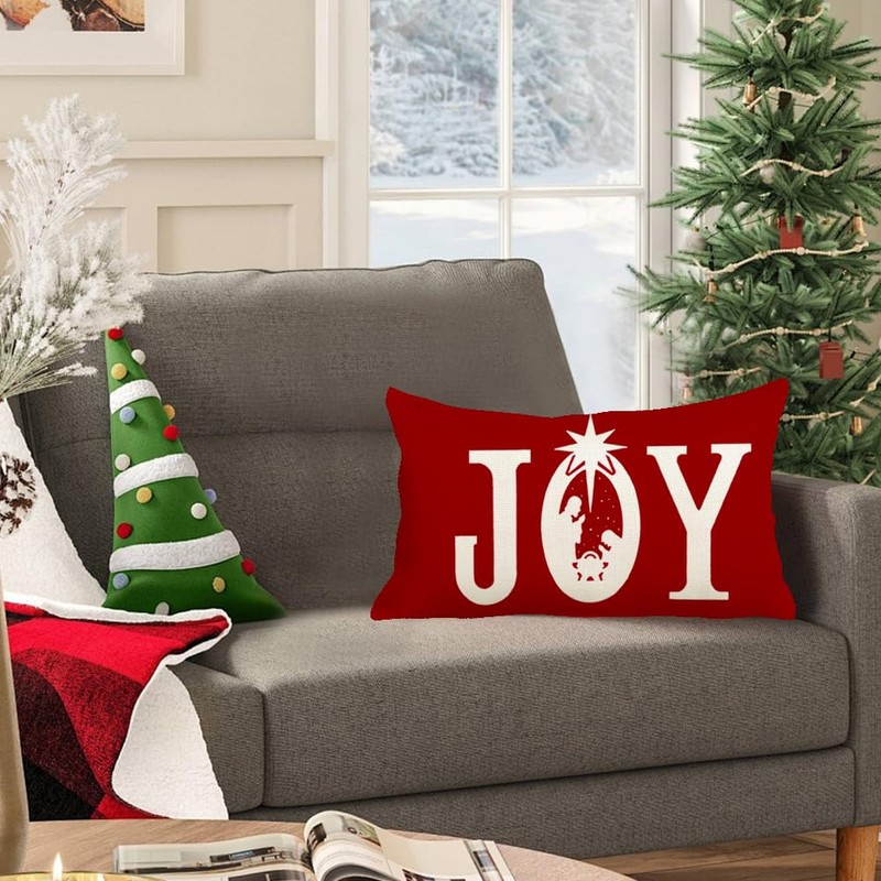 RABUSOFA Christmas Pillow Covers 12x20 Inch Red Christmas Decorations Joy Decorative Throw Pillows Christian Nativity Jesus Lumbar Cushion Covers Outdoor Winter Pillow Cases for Couch Holiday Xmas
