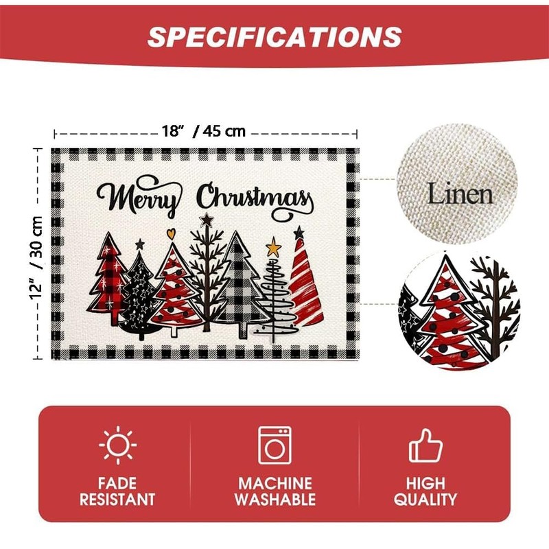 - Christmas Table Decor Size : 12x18 inch/30x45 cm set of 4 Kitchen table Christmas tree placemats, better match your table and give you a delightful dining experience.