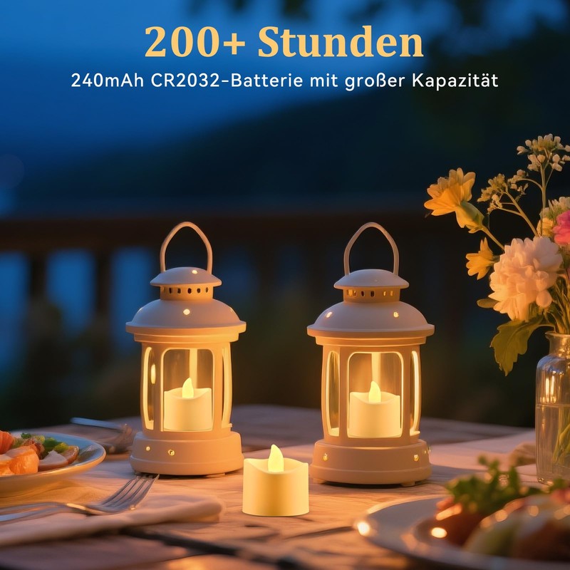 - 【Flameless Electronic Teelicht】 Die flackernden flammenlosen LED-Kerzen sind aus hochwertigen Materialien hergestellt, um das Gefühl und das Aussehen von echten Kerzen zu replizieren. Keine Brandgefahr, kein tropfendes Wachs, kein Rauch, schwankt und flackert wie eine echte Kerze. Sie können auf einem Wunschregal oder als perfekte Dekoration auf einem Esstisch oder einer Fensterbank platziert werden.