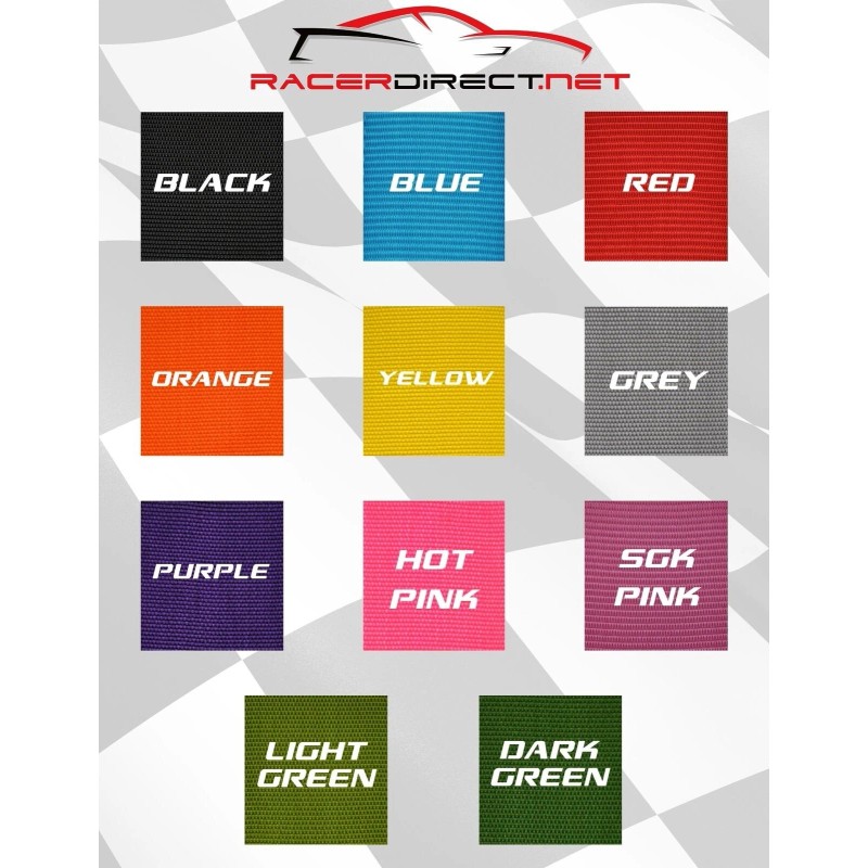 This harness pictured is Blue in color but if you would like another color please leave a note or message at checkout. The price is still the same for Black, Blue, Red, Orange, Yellow, Gray, Purple, and Hot Pink. This item will come with a current SFI tag within the month/year that it is purchased as it is a new belt and currently undated. This is also a re-certifiable belt through Racerdirect.net after two years and can be re-certified three times in its lifetime of 10 years.