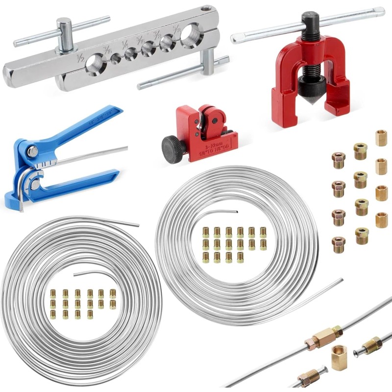 25 Ft 3/16 + 1/4 Zinc-Coated Brake Line Tubing Kit With 30 Fitting and 4 Unions)