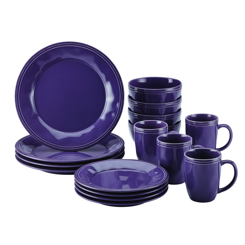 Rachael Ray Cucina Dinnerware 16-Piece Stoneware Dinnerware Set, Lavender Purple