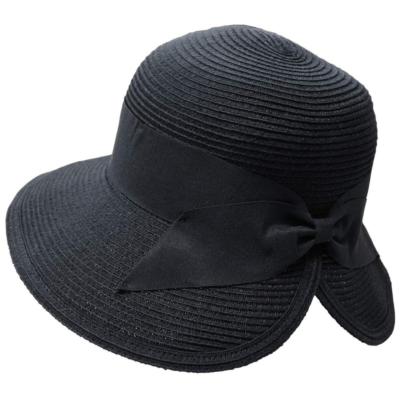 [RACHEL] レイチェル つば広 麦わら帽子 レディース 小顔効果 折りたたみ サイズ調整 軽量 洗える (ブラック)