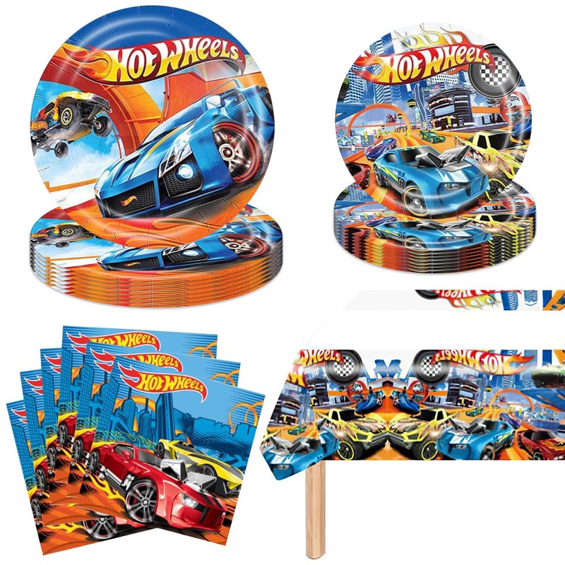 - Racing car party tableware: 10 pieces 9 inch plates, 10 pieces 7 inch plates, 20 napkins and 1 tablecloth. This birthday plate set can serve up to 10 guests!