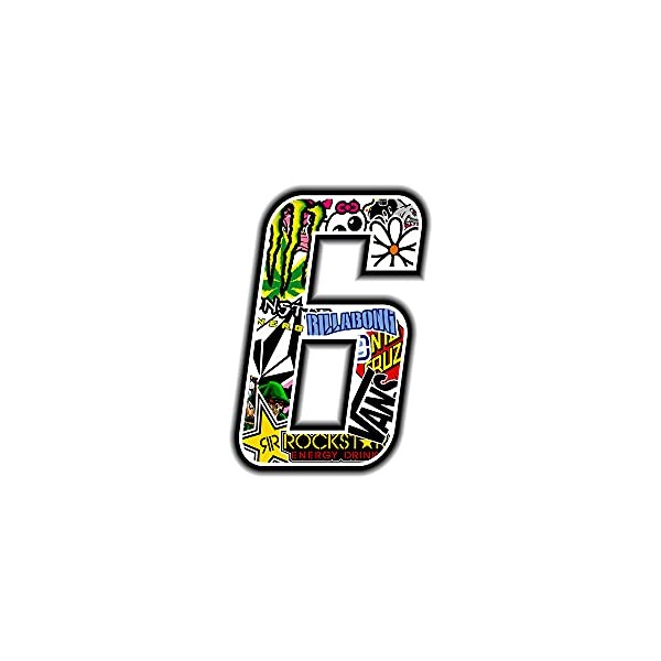 Racing Number 6Â Sticker Sticker Bomb, 10Â x 7.5Â cm