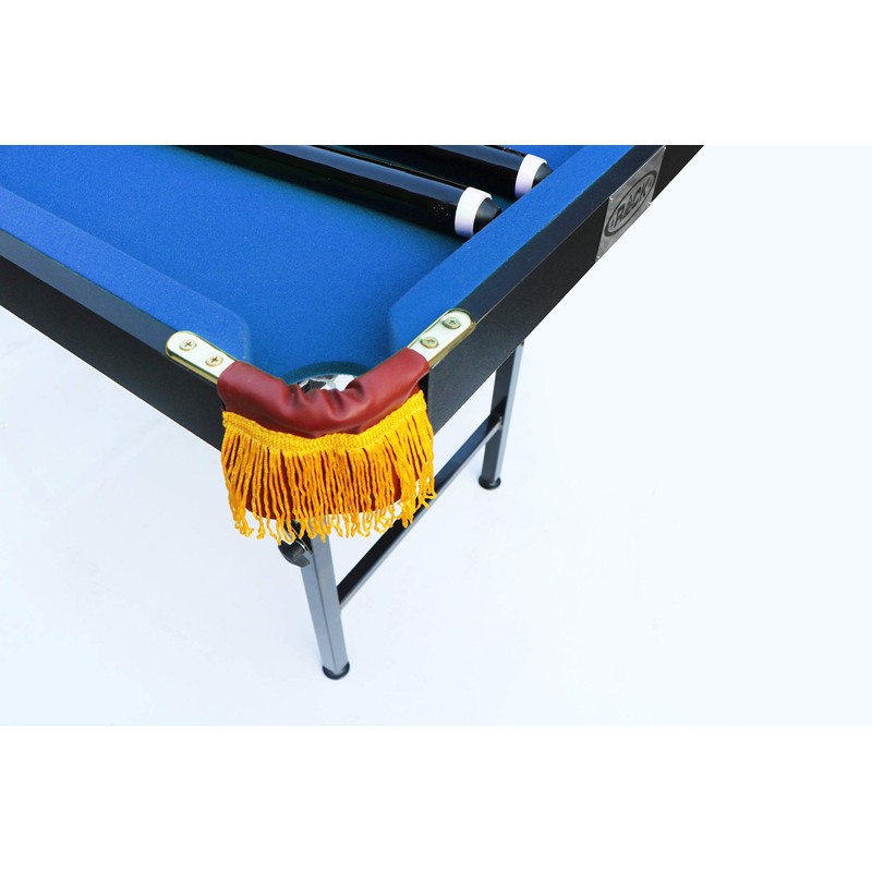 Rack Leo Table boasts an easy storage, NO ASSEMBLY, fold up design, making it the ideal space-saving small pool table for anyone who wants to successfully build up confidence that leads to a lifetime of nailing shots on full size pool tables. The Leo, a regulation grade, ALL-INCLUSIVE pool table set includes an extra sturdy 1/2" MDF pool table bed, regulation grade velvet felt, L88 rubber bumper cushions for an ideal ball bounce and roll, allowing kids to learn faster, WIN FASTER and upgrade to full-size table pool shark status in record time!