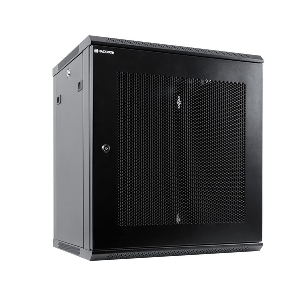 RackPath 12U Wall Mount Server Cabinet Network Rack Enclosure, Quiet Cooling Fan, Perforated Door, Black
