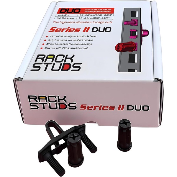 - THE GO-TO CHOICE FOR DATA CENTERS WORLDWIDE: The Innovative New Rackstuds Series II DUO builds on our reputation for ensuring you can rack your gear faster, on your own and without hurting your fingers. Got 1RU gear? GET DUO and mount it faster.