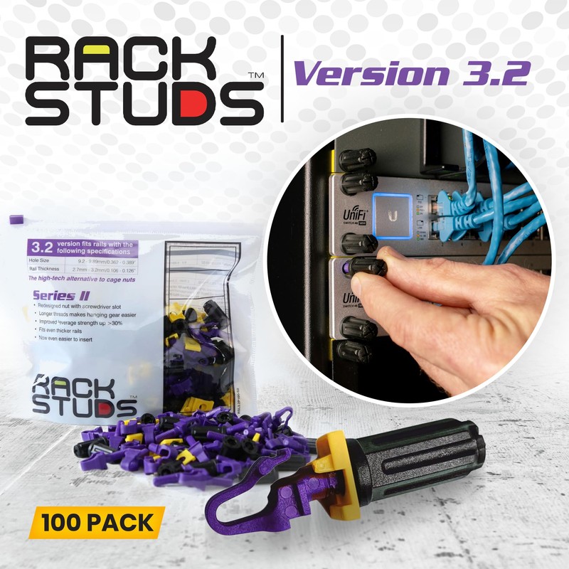 - THE GO-TO CHOICE FOR DATA CENTERS WORLDWIDE: With Over 1.5 Million units sold, The Innovative New Rackstuds Series II builds on this reputation and is now Stronger and Faster to Insert, with longer threads, fits even thicker rails with improved leverage strength - over 30% stronger than the previous series.