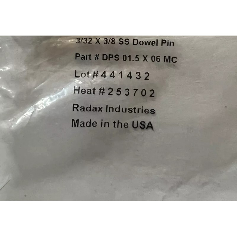 Radax Dowel Pin 3/32 x 3/8 SS316 25pcs (DPS 01.5 X 06 MC)