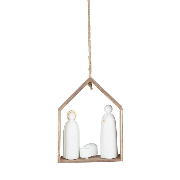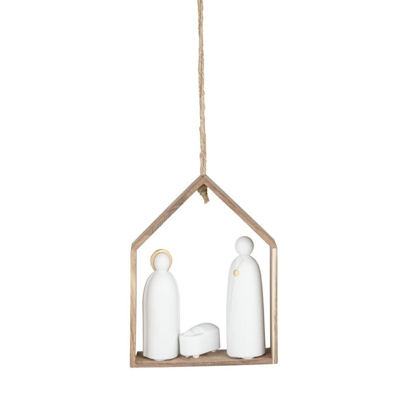 - Three-dimensional porcelain figurines and objects made of matte porcelain in a small house made of acacia wood. Can be used as a tree decoration or for standing.