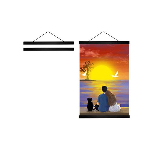 - EASY TO USE - Using the two wooden bars with the strap attachment, place the top edge of your poster on top of one wooden bar. Gently place the matching bar on top to sandwich your poster in between. Repeat on bottom edge.