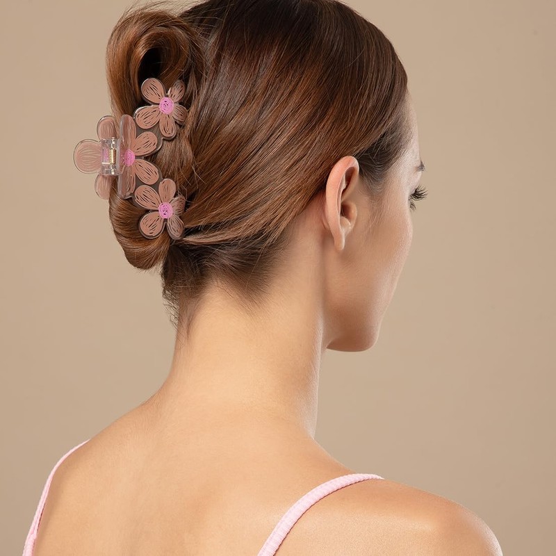 - Colourful Floral Design: Features adorable pastel flower claw clips in green, yellow, and purple for a playful, chic look.