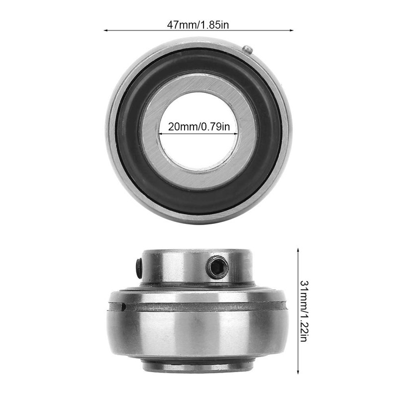 Radial Insert Bearing, Steel 2pcs UC204/UC204-12 Ball Bearing 31mm/1.22in Height for Variety of Machinery(UC204)