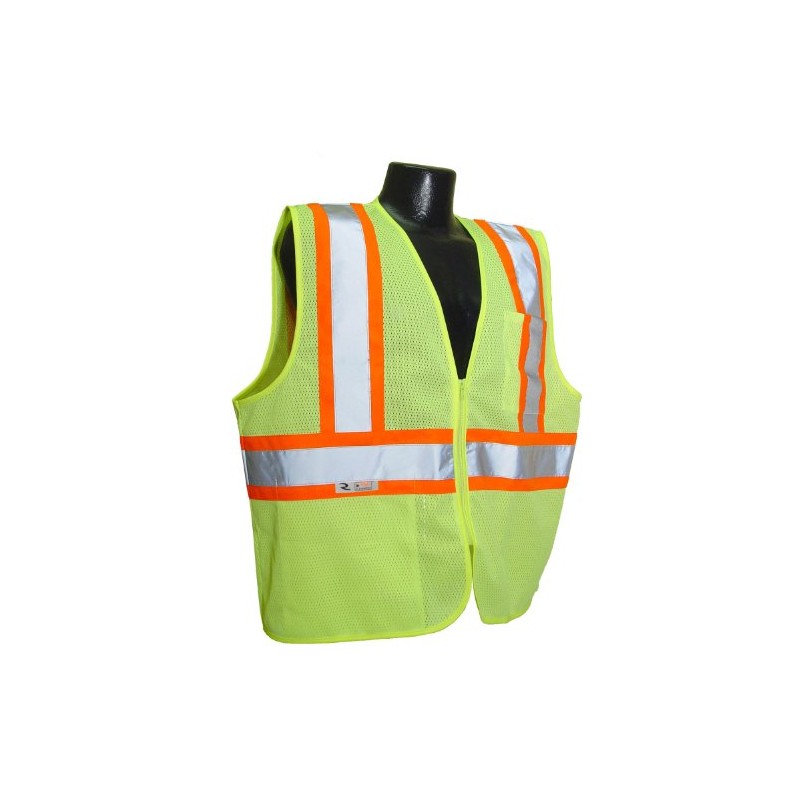 Radians Safety Vests Economy Two Tone, Class 2, has a two tone reflective trim, one horizontal 2" tape, zipper closure and meets the ANSI/ISEA requirments. This vest comes in Orange or Green mesh.