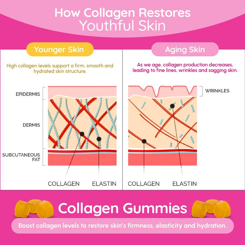 - ✅ RADIANT SKIN & YOUTHFUL GLOW: Our Radiant Skin Collagen Gummies are a delicious combination of essential vitamins with 500mg of hydrolysed collagen. Taken once a day, these tasty biotin collagen gummies help reduce fine lines, improve skin elasticity and give a natural youthful glow.