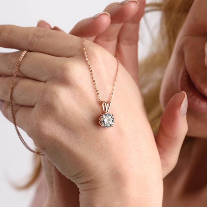 - 【Why Moissanite?】➣ A 7mm 1-carat round moissanites offers a stunning and cost-effective alternative to a diamond. Moissanite stones consistently pass diamond testers and boast fire color brilliance 2.5 times greater than diamonds. With a hardness second only to diamonds, this Moissanite Solitaire Pendant is incredibly durable and tarnish-resistant, making it perfect for everyday wear!