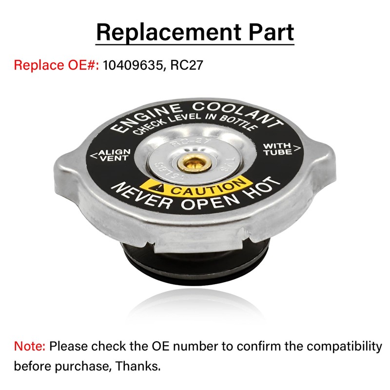 - 【Radiator Tank Cap Replace Number】10409635, RC27. Please check the OE number to confirm the compatibility before purchase, Thanks.
