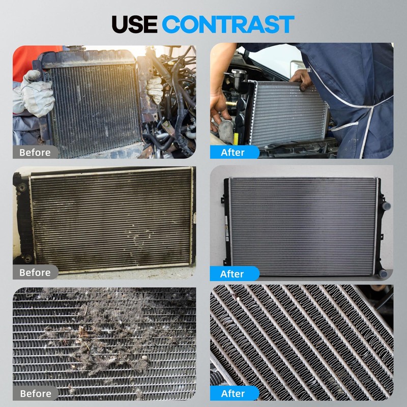 • 【HIGH-PRESSURE CAR WATER TANK CLEANING TOOL】 This radiator cleaner features a 39'' flat wand with pressure washer jetter nozzle, compatible with most high-pressure washers and delivering up to 4500 PSI. It ensures even water distribution and powerful flushing, effectively removing mud, bugs, and debris from radiators, condensers, undercarriages, tight engine bays, exterior surfaces, gutters, and HVAC units