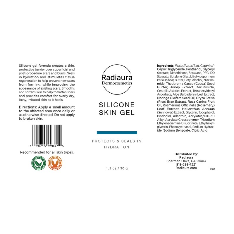 Radiaura Silicone Skin Gel, Hydrating Protective Barrier for Scars and Burns, 1.1 oz
