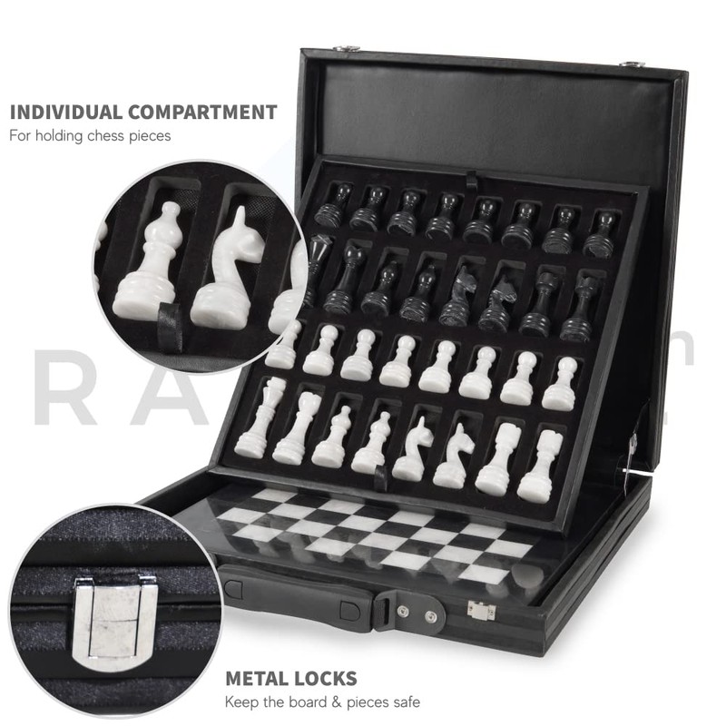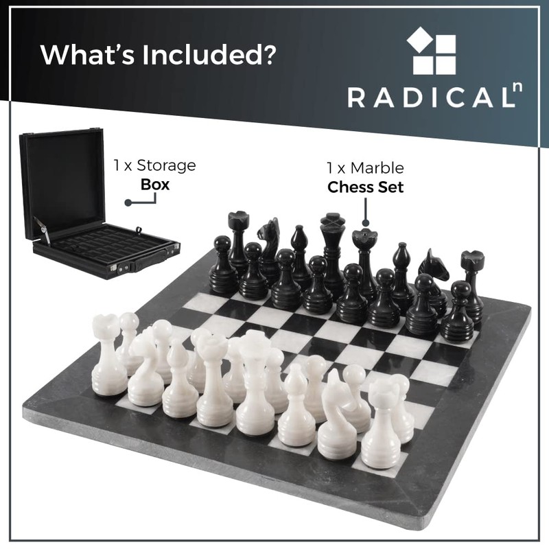 Radicaln Marble Chess Set with Storage Box 15 Inches Black and White Handmade Board Games for Adults - Board Games 1 Chess Board Games Board & 32 Chess Pieces - 2 Player Games for Adults