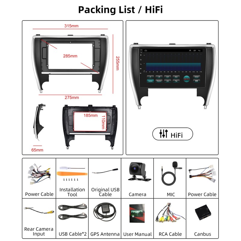 - 【Bluetooth & FM Radio & EQ】for 2015 Toyota Camry car stereo with bluetooth, connect to your phone via Bluetooth for hands-free answering and making calls, playing music intelligently. The radio with FM radio, 18 preset stations, you can listen to real-time traffic, news broadcasts, weather forecasts etc.Support a variety of EQ sound effects scene selection, Frequency division adjustment shocking surround panoramic.