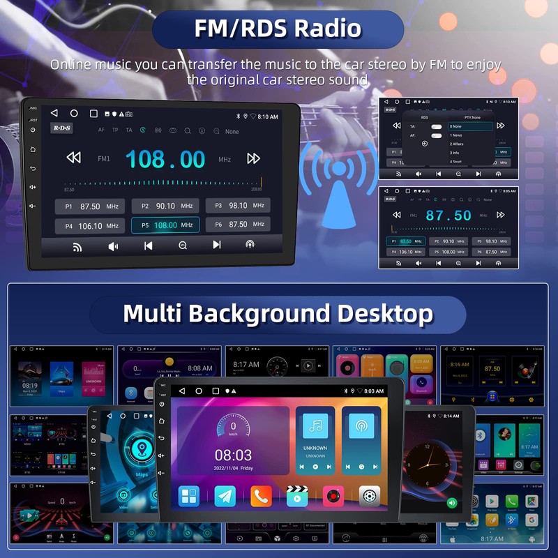 ●FM Radio: Online music you can transfer the music to the car stereo by FM to enjoy the original car stereo sound,with 18 preset stations