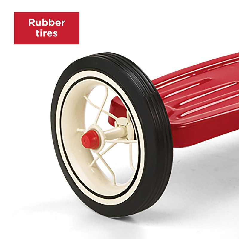 - The sturdy steel design and rubber tires make this tricycle durable and easy to ride for ages 2-4 years.