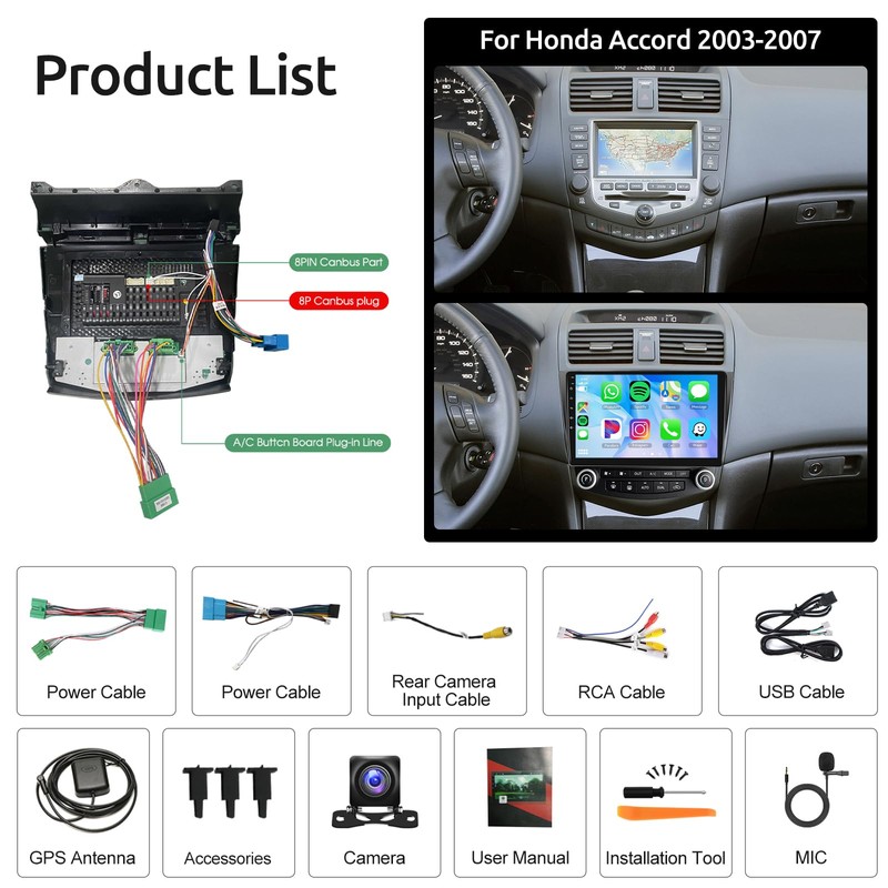 - Compatible Vehicles: Android car stereo carplay for Honda Accord 2003 2004 2005 2006 2007. Carplay stereo equipped with 10.1 inch Touch screen, enjoy HD colorful pictures. Memory:1GB (RAM)+32GB (ROM), Support GPS/WiFi, 2 Spilt Screen, colorful UI, 2 USB adapter input etc. We offer 30-day Money-Back, 12-month Replacement, life-time Technical Support.