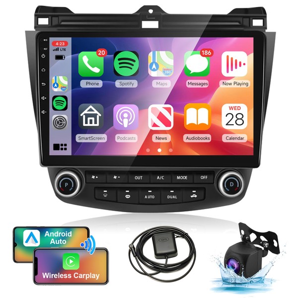 - Wireless Carplay and Android Auto and Mirror link: for 2004 Honda Accord radio support use iPhone or Android phone wirelessly with the device, and control your phone's apps. can make calls, send messages, play music, navigate, and more with just your voice or touch. Support IOS/Android mirror link, use USB cable or WIF, mirror your phone's screen on the device's display, You can use your phone's apps, music, videos, and more on the device.
