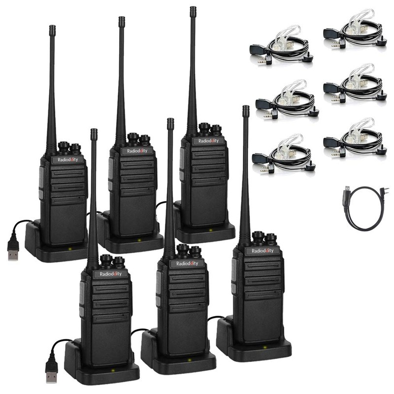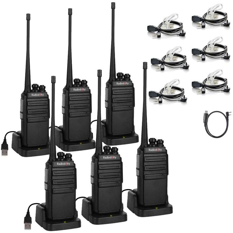 Radioddity GA-2S Long Range Walkie Talkies UHF Two Way Radio for Camping/Security/Business with Micro USB Charging + Air Acoustic Earpiece with Mic + 1 Programming Cable (6 Pack) by Radioddity Store