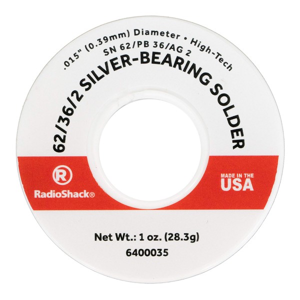 RadioShack SnPbAg 62/36/2 Silver-Bearing Rosin-Core Solder, 0.015" Diameter - 1.0oz