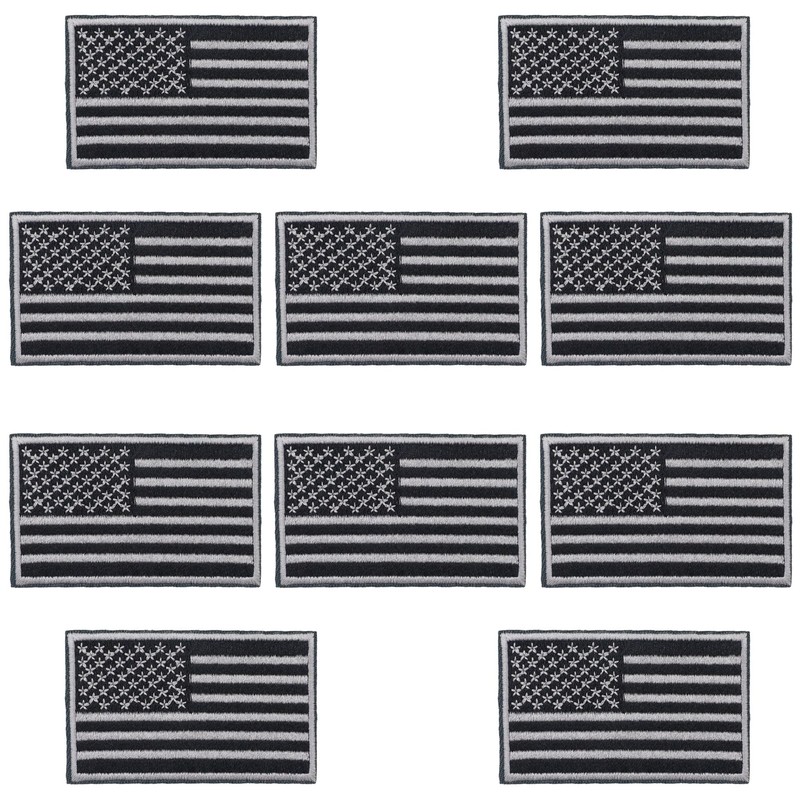 RadishGirls 10PCS American Flag Patch Iron On/Sew On Patches, Tactical USA Flag Embroidered Patches Appliques for Clothes, Hats, Uniforms, Backpacks, T-Shirt, Jackets, Jeans, Vests, Grey