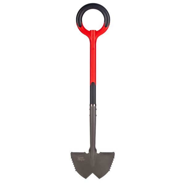 Tested to the same exacting standards as the original, the Root Slayer Edger slices through sod and small-to-medium roots like they're nothing. There's never been a more serious edger on the market. The ergonomic Natural Radius O-Handle Grip provides four-times the grip surface of traditional D-Handles. Super-strong, 13-gauge mid-carbon steel blade will never bend. The Root Slayer Edger saves you time as it smoothly cuts crisp borders around your yard, garden, driveway, or sidewalk. One pass and you're done. The "Inverted V" blade and root-cutting ripsaw teeth carve a clean edge, whether straight or curved, eliminating the need for additional saws, hatchets, or pry-bars.