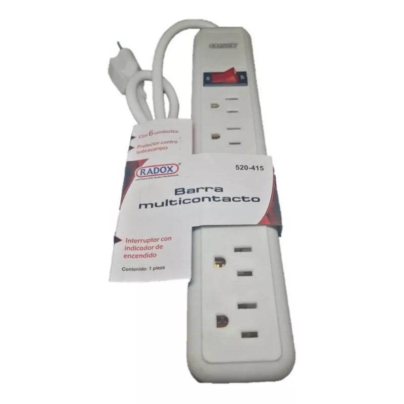 Radox Barra Multicontacto 6 Tomas Protector Sobrecargas