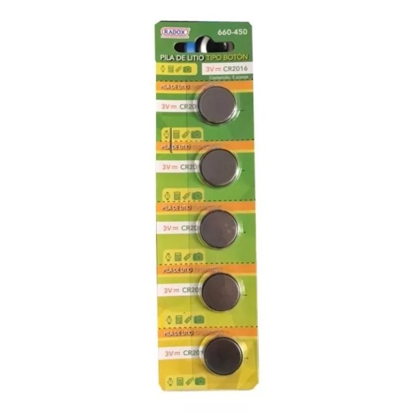 Radox Paquete De 5 Pilas De Litio 3v Tipo Boton Cr 2016