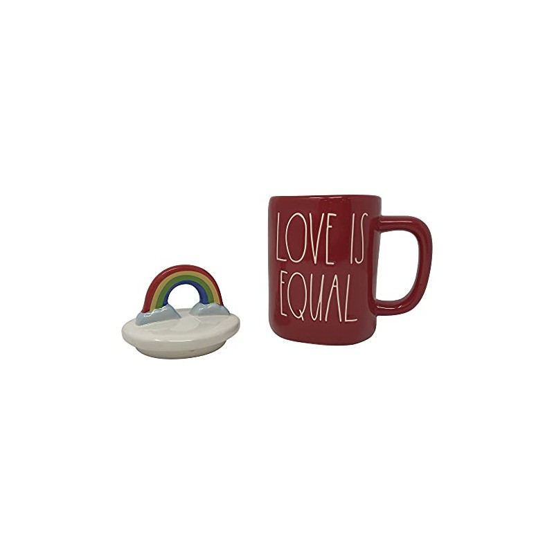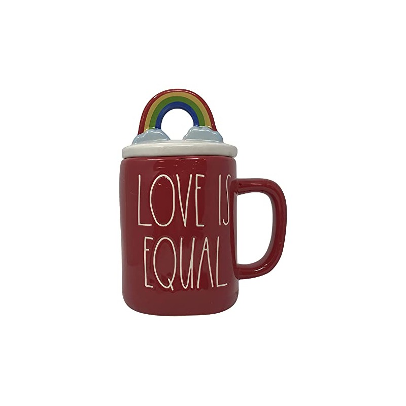 Rae Dunn Coffee Mugs with Decorative ceramic Lids (Love is Equal/Red Rainbow)