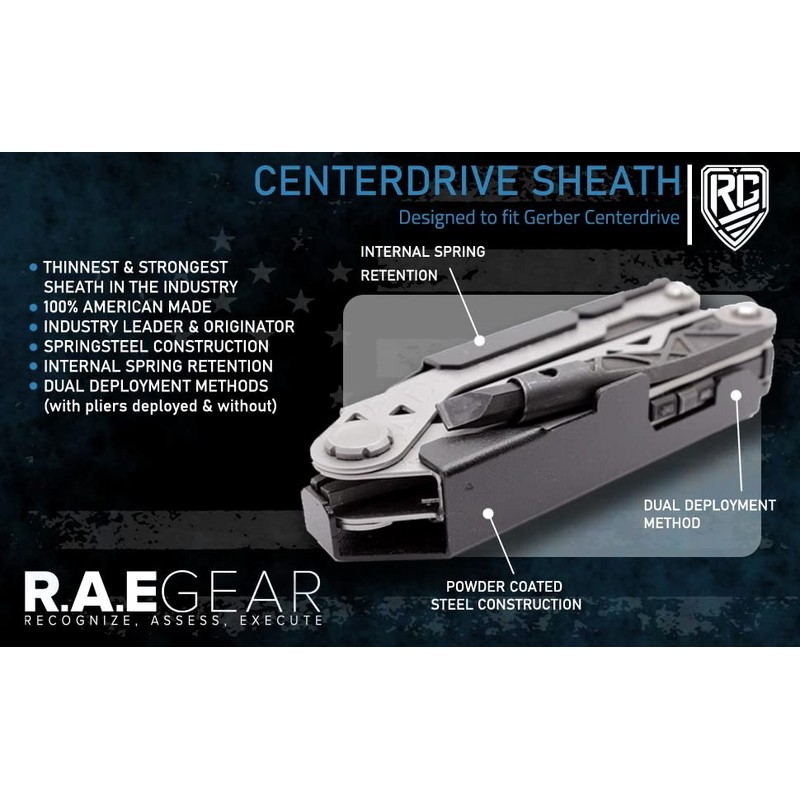 RAE GEAR - CENTER-DRIVE Sheath belt clip holster Compatible with Gerber Centerdrive multitool (TOOL & BITS NOT INCLUDED) (2.25" BELT CLIP - NO BIT KIT ATTACHMENT)
